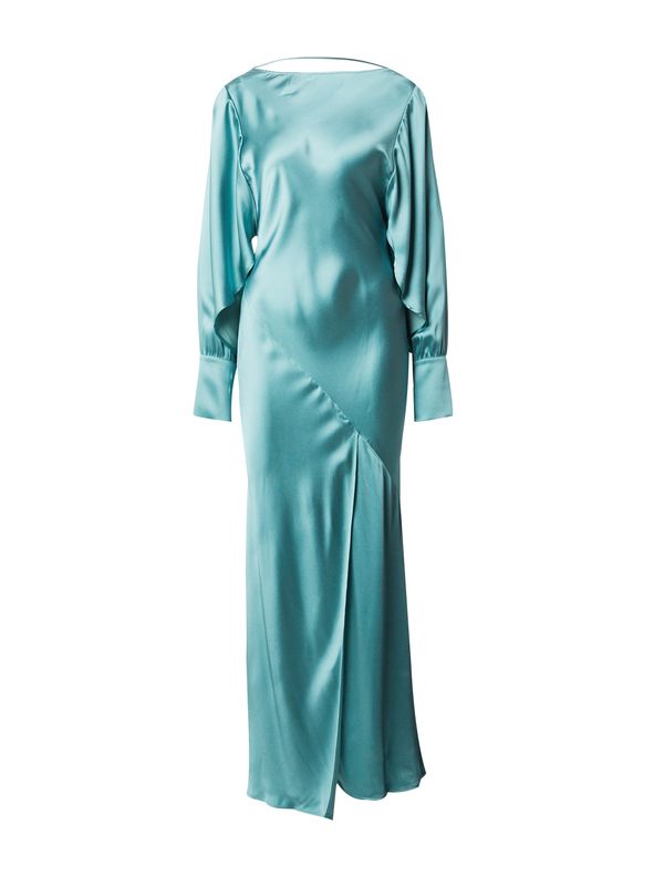 Dizajn: Prorez za noge, Ravne manžete; Materijal: Saten; Izrez: Lađa izrez; Uzorak: Jednobojno; Detalji: Drapirano/nabrano, Otvorena leđa; Dodaci: Šavovi u tonu (dye to match), Glatka tkanina, Lagana tkanina; Dužina: 7/8 duljina; Rez: Grli figuru; Kroj: Pripijeni kroj; Dužina rukava: Dugački rukavi