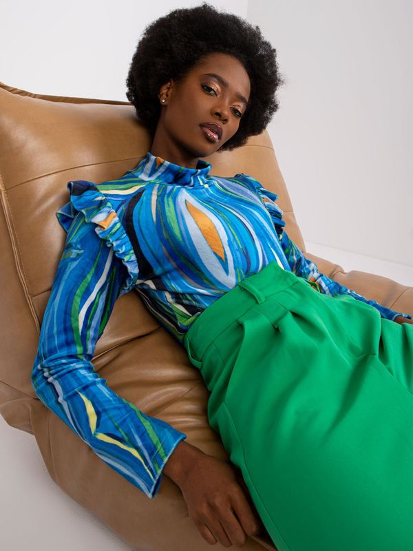 Material: 95% polyester, 5% elastanewashing method: machine wash at 30°C The model is wearing one size. Model's measurements: height 162 cm, bust 80 cm, waist 63 cm, hips 80 cm. Measurements of the blouse in one size measured flat: armpit width - 45 cm, total length - 60 cm, sleeve length - 57 cm.