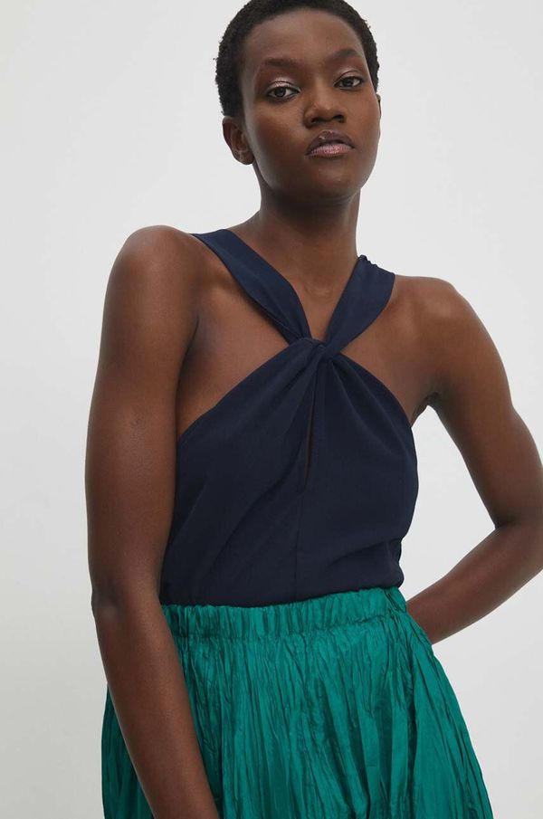 - Jednostavan kroj koji ne ograničava kretanje.- Nepodesiva naramenica koja se ne može odvojiti.- Dekorativni, V izrez.- Tanka, lagano elastična tkanina.- Duljina: 69 cm.- Širina ispod pazuha: 43 cm.- Dimenzije navedene za veličinu: S.