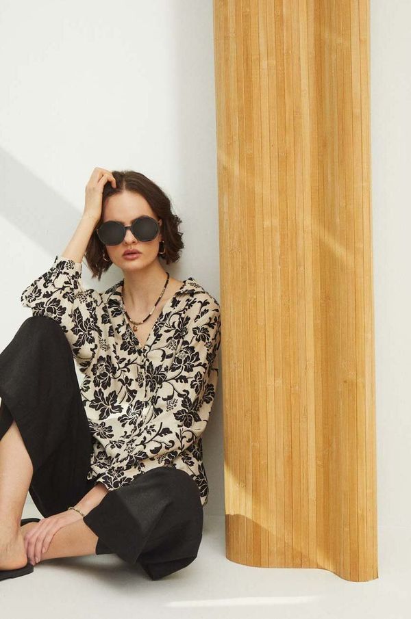 - Kroj regular.- Dugi rukav.- Model s ovratnikom.- Kopčanje na dugmad.- Tkanina s uzorkom.- Uzorak s biljnim motivom.- Materijal od mješavine lana osigurava udobnost i prozračnost.- Duljina rukava: 58,5 cm.- Duljina: 67 cm.- Širina ispod pazuha: 50 cm.- Dimenzije navedene za veličinu: S.