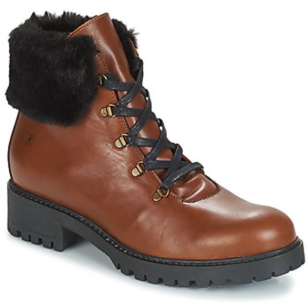 Yellow-brown leather ankle boots with Tamaris fur - Women