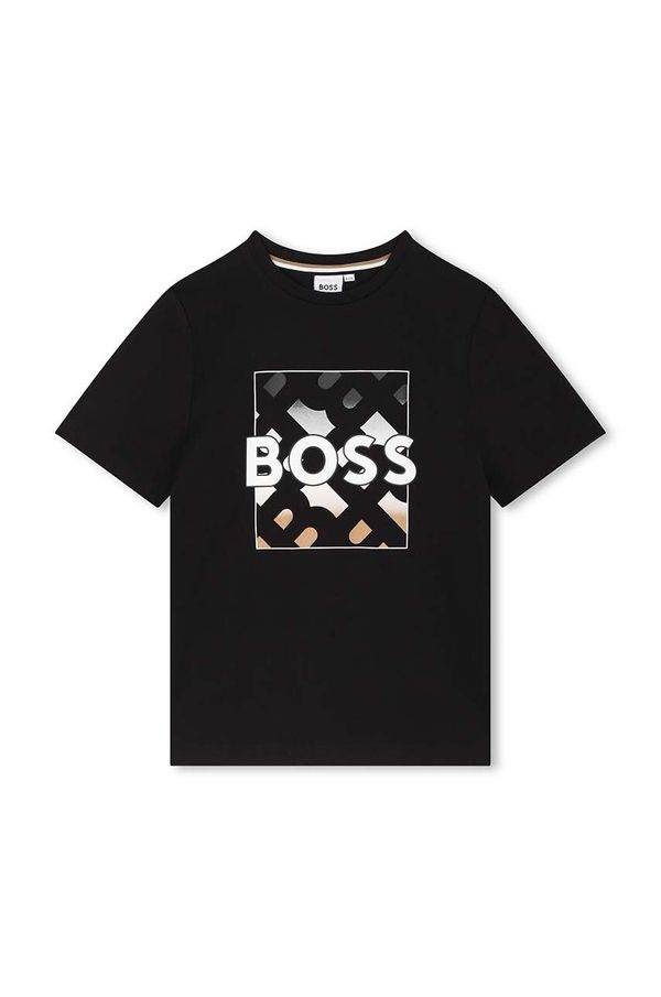Dječja pamučna majica kratkih rukava BOSS boja: crna, glatki model