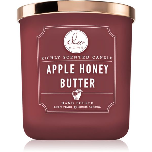 DW Home Apple Honey Butter, 264 g, Mirisne svijeće Mirisi za dom, Mirisna svijeća DW Home Apple Honey Butter zamirisat će u vašem domu predivnim mirisom, te će tako kreirati ugodnu atmosferu zahvaljujući kojoj ćete se osjećati uvijek odlično. Svojstva: slatka aroma gurmanski miris Način upotrebe: Svijeću stavite na površinu prilagođenu za više temperature. Nemojte ju ostavljati upaljenu dulje od 4 sata. Nikada ne ostavljajte da svijeća dogori. Upaljenu svijeću ne ostavljajte bez nadzora i u blizini zapaljivih predmeta. Držite izvan domašaja djece i kućnih ljubimaca. Pustite svijeću da gori najmanje onoliko dugo koliko je potrebno da se rastopi cijeli gornji sloj. Tako ćete spriječiti nastanak nepoželjnih udubina u vosku. Za optimalno gorenje preporučujemo redovito skraćivanje fitilja na preporučenu duljinu.