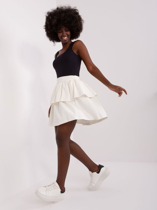 Ecru striped knitted miniskirt . Material Type: Ribbed Product code: EM-SD-HS-20-08.88Dominant pattern: smoothStyle: CasualOccasion: every day, to the city, for a walk, for summer The model is wearing size S/M. Measurements: height 168 cm, breasts 82 cm, waist 62 cm, hips 93 cm. Skirt dimensions in size S/M measured flat: waist width - 36 cm, total length - 45 cm.