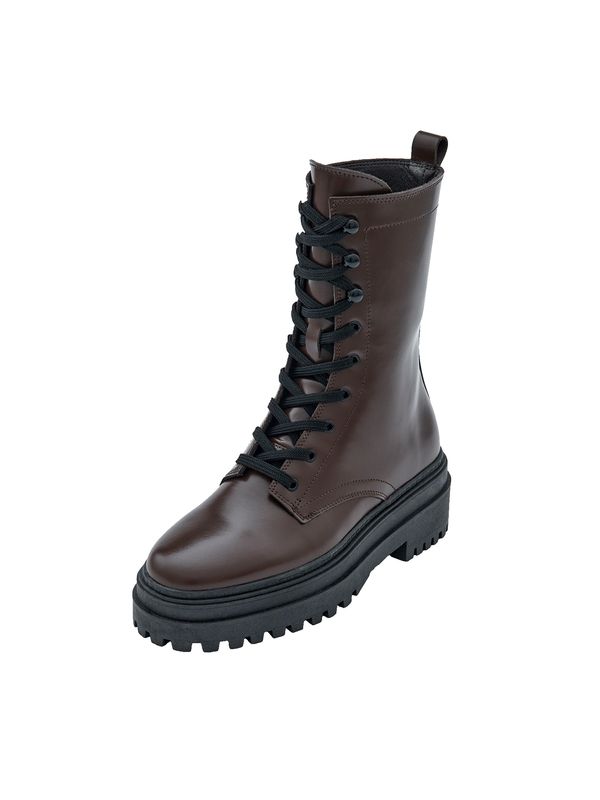 Pull&Bear Gležnjače na vezanje tamno smeđa / šafran