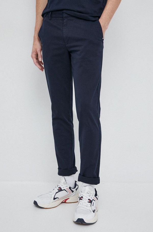 - Kroj slim fit.- Dva bočna džepa.- Srednje visoki struk.- Zatvaranje na patentni zatvarač, gumb i kukicu.- Glatka tkanina.- Širina struka: 44 cm.- Širina oko kukova: 49 cm.- Visina struka: 25 cm.- Širina nogavice dolje: 17 cm.- Širina nogavice: 30 cm.- Duljina nogavice: 104 cm.- Dimenzije navedene za veličinu: 48.