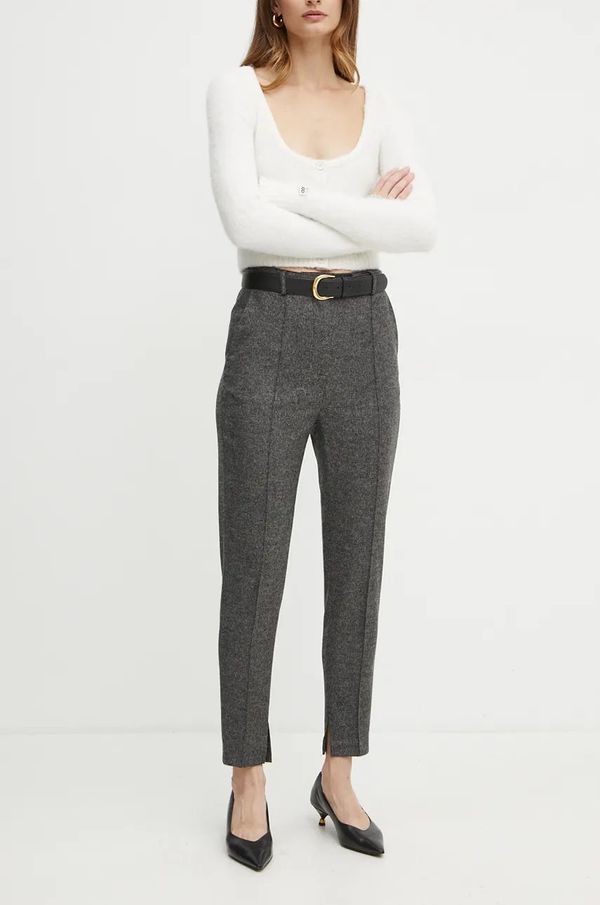 Dostupne veličine preračunate su iz talijanske veličine u standardnu europsku veličinu. Naručena veličina može se razlikovati od one prikazane na etiketi (IT 38/XXS = EU XS). Kako biste bili sigurni, pogledajte tablicu veličina.- Hlače blago pripijene u području kukova.- Dizajn sa suženim nogavicama koji ne sputava pokret.- Model s visokim strukom i kopčanjem na patentni zatvarač i gumbe.- Dva bočna džepa.- Širina struka: 35 cm.- Širina u bokovima: 48 cm.- Visina struka: 31 cm.- Širina nogavice pri dnu: 14 cm.- Širina nogavice: 27 cm.- Vanjska duljina nogavice 98 cm.- Dimenzije navedene za veličinu: 36.