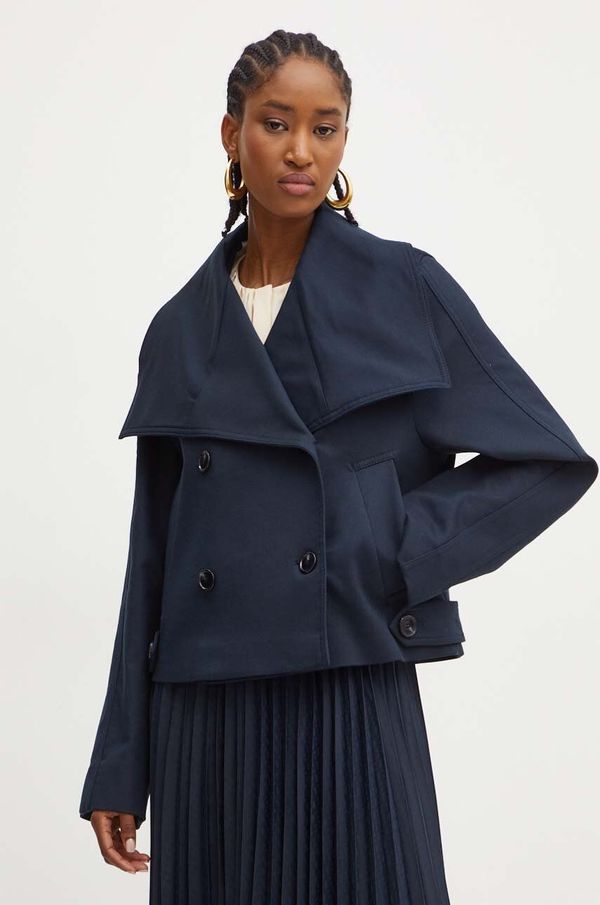 - Jednostavan kroj koji ne ograničava kretanje.- Dvoredno kopčanje na gumbe.- Klasični preklopi.- Model bez toplinske izolacije, s podstavom.- Dva džepa na prednjoj strani.- Duljina rukava: 62 cm.- Duljina: 50 cm.- Širina ispod pazuha: 50 cm.- Širina u ramenima: 40 cm.- Dimenzije navedene za veličinu: 36.