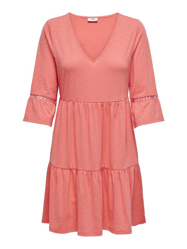 Dizajn: Prekriveni rub/šav, Traka na vratu; Izrez: V-izrez; Uzorak: Jednobojno; Detalji: Čipka, Na volane, Drapirano/nabrano; Dodaci: Šavovi u tonu (dye to match), Fina tkanina, Lepršava tkanina; Dužina: Kratka/mini; Rez: Zvonoliki kroj; Kroj: Lepršavi kroj; Dužina rukava: Tri-četvrt rukavi