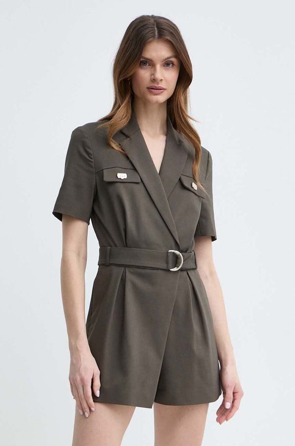 - Jednostavan kroj koji ne ograničava kretanje.- Model s podstavom.- V izrez.- Model s ovratnikom.- Kratki rukav.- Zatvaranje na patentni zatvarač i drukere.- U isporuci remen.- Tanka, ne elastična tkanina.- Dva bočna džepa.- Ukrasne faldice.- Širina struka: 31 cm.- Širina u bokovima: 53 cm.- Visina struka: 33 cm.- Širina nogavice pri dnu: 34 cm.- Širina nogavice: 35 cm.- Duljina: 76 cm.- Širina ispod pazuha: 46 cm.- Dimenzije navedene za veličinu: 36.