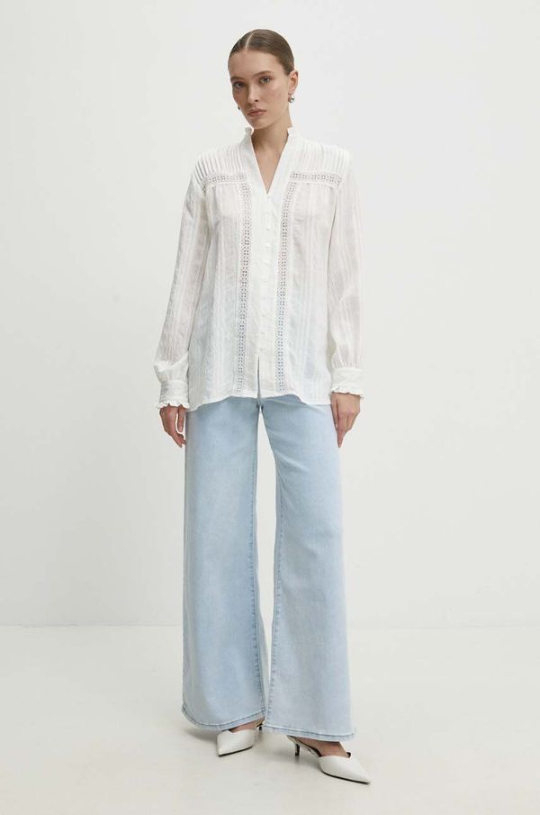 - Jednostavan kroj koji ne ograničava kretanje.- Rukavi s manžetama na kopčanje.- Model s malim okovratnikom.- Kopčanje na dugmad.- Model s ukrasnim vezom.- Tanka, ne elastična tkanina.- Duljina rukava: 62 cm.- Duljina: 71 cm.- Širina ispod pazuha: 53 cm.- Dimenzije navedene za veličinu: S.