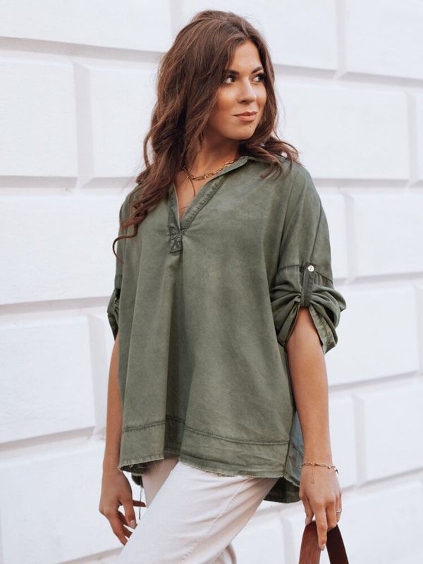 Koszula damska oversize DIMAKoszula wykonana w 100% z bawełny zapewni Ci niesamotny komfort. Rękawy z możliwością podwinięcia, oversizowy krój i niesamowity kolor sprawią, że poczujesz się wyjątkowa. Model dostępny w najmodniejszych kolorach tego sezonu.Kolor: Zielony.Skład: 100% bawełna. Wymiary modelki:Biodra: 85 cmTalia: 68 cmBiust: 87 cmWzrost: 172 cmRozmiar buta: 39Modelka nosi rozmiar S