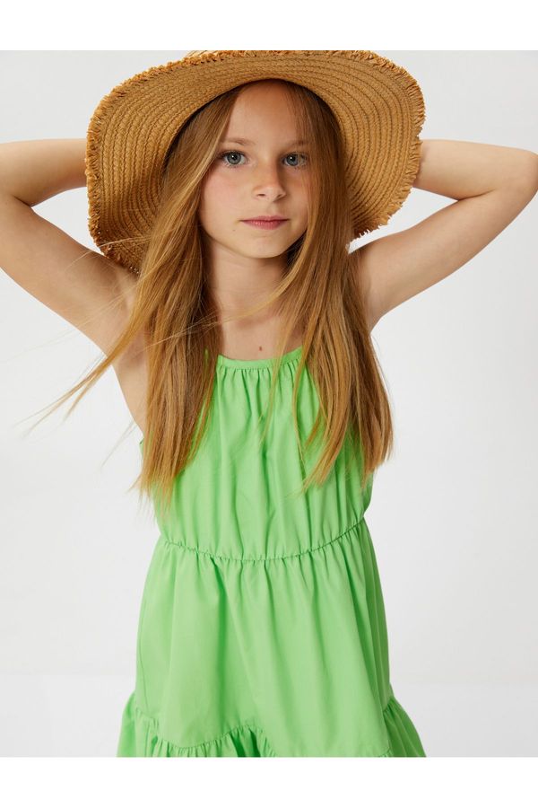 Cotton girls' dress models increase the fun with their eye-catching designs.; Thin strapped, halter neck, layered cotton maxi dress adds elegance to your little girl's look.; | Model Height: 1 | Model Hips: 1 | Model Top: S | Model Waist: 1 | Model Chest: 1 | Model Jean: 32/34