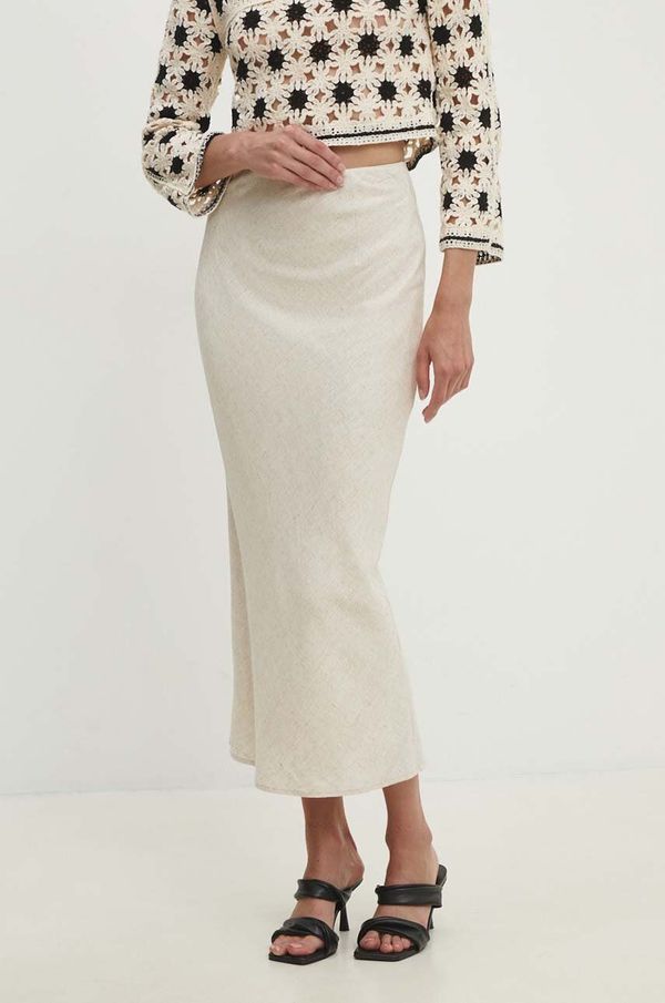 - Jednostavan kroj koji ne ograničava kretanje.- Dodatni sloj materijala u obliku podstave.- Model s visokim strukom i bočno kopčanje patentnim zatvaračem.- Efektan prorez.- Tanka, ne elastična tkanina.- Širina struka: 33 cm.- Duljina: 92 cm.- Dimenzije navedene za veličinu: S.