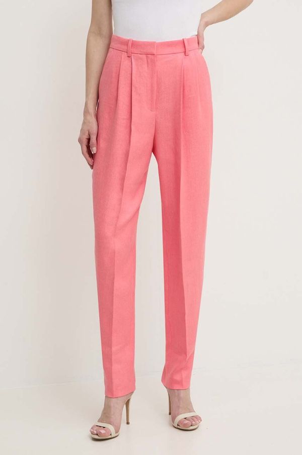 - Proizvodi BETTER BOSS linije izrađeni su od najmanje 60% materijala dobivenih na više ekološki način.- Hlače širokog kroja u području bokova i bedara.- Zatvaranje na patentni zatvarač, gumb i kukicu.- Sužena nogavica.- Nogavica izglačana na crrtu.- Ukrasne faldice.- Dva bočna džepa.- Dva džepa na stražnjici.- Tanka, ne elastična tkanina.- Širina struka: 35 cm.- Širina u bokovima: 54 cm.- Visina struka: 30 cm.- Širina nogavice pri dnu: 17 cm.- Širina nogavice: 28 cm.- Vanjska duljina nogavice 106 cm.- Dimenzije navedene za veličinu: 36.