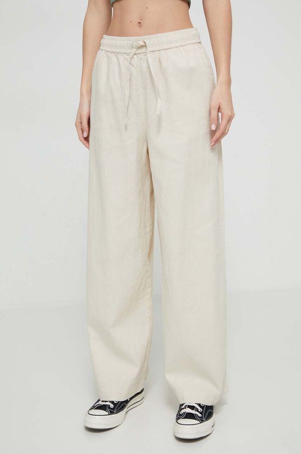- Jednostavan kroj koji ne ograničava kretanje.- Elastična traka u struku s vezicama.- Uvlačni džepovi.- Tanka, ne elastična tkanina.- Širina struka: 33 cm.- Širina u bokovima: 58 cm.- Visina struka: 33 cm.- Širina nogavice pri dnu: 33 cm.- Širina nogavice: 35 cm.- Vanjska duljina nogavice 99 cm.- Dimenzije navedene za veličinu: S.