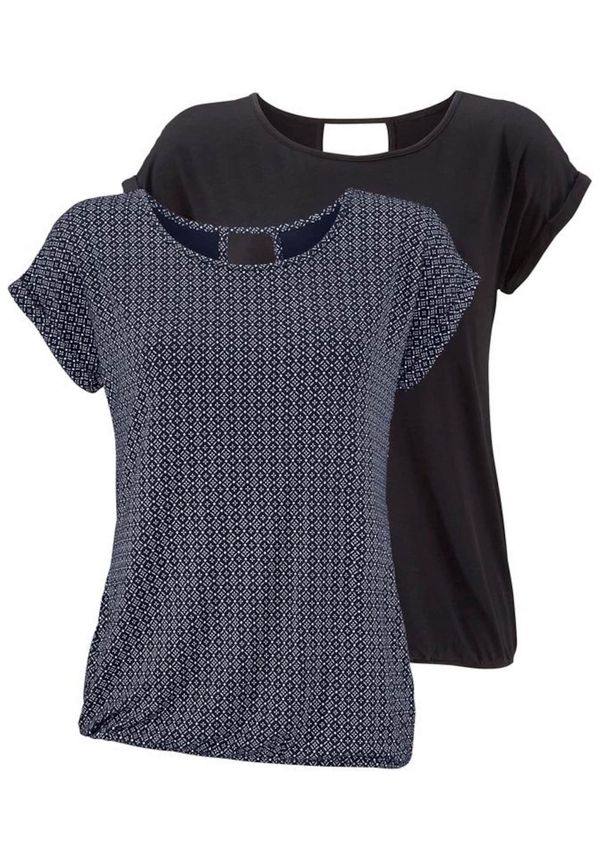 Dizajn: Zavrnuti rukavi, Elastični struk/rub; Materijal: Jersey, Viskoza; Izrez: Okrugli izrez; Detalji: Izrezi; Dodaci: Lepršava tkanina, Mekani grip; Kroj: Normalni kroj; Boje u paketu: Višebojno pakiranje; Paket: Pakiranje od 2; Dužina rukava: Četvrt rukavi; Dužina: Normalna duljina