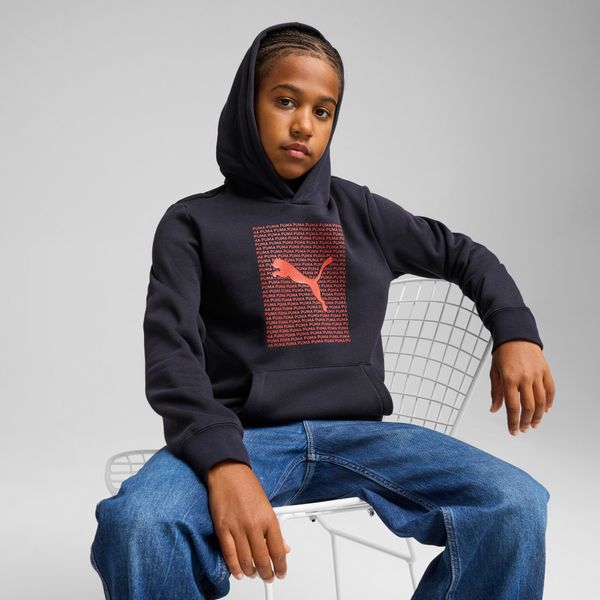 Show off your inner trendsetter with this hoodie featuring bold PUMA graphics and ribbed cuffs. The perfect blend of style and comfort for any occasion. Embrace the vibe and make a statement wherever you go. FEATURES & BENEFITS Made with at least 20% recycled cotton Regular fit Fleece Regular length Hooded Long sleeves Kangaroo Pocket PUMA Youth: Recommended for older kids between 8 and 16 years Main Material 1: 40% cotton, 34% polyester Recycled, 26% cotton Recycled - fleece - 280.00 g/m² - piece dyed - Mechanical - Brushing Kids Unisex > Clothing > Sweatshirts & Hoodies