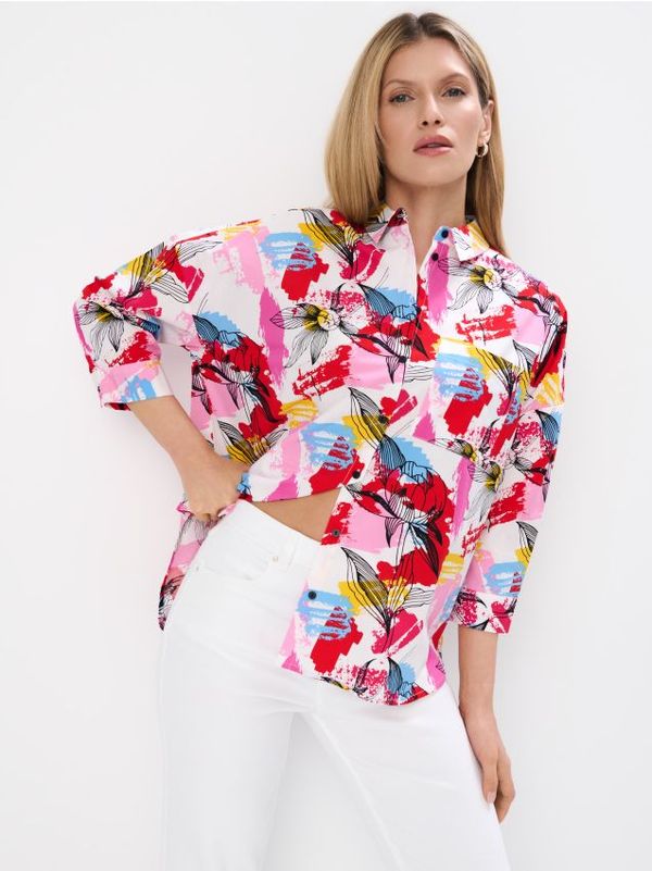 Trendyol Multi Color Crop Woven Square Neck Floral Pattern Blouse