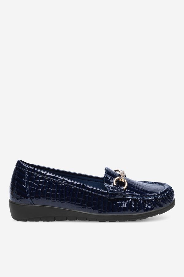 Marjin Women's Loafers Chain Accessorized Loafers Casual Shoes Alva Black Croco