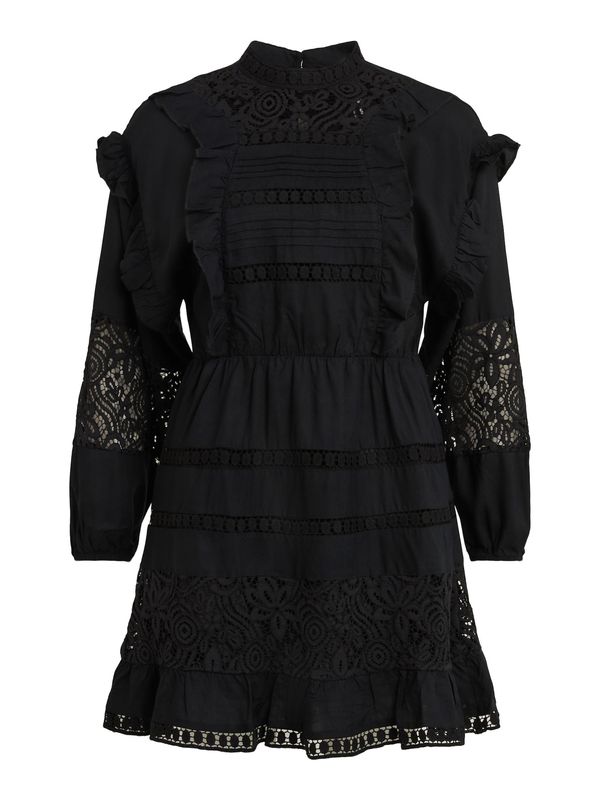 Dizajn: Zvonoliki kroj, Elastični struk/rub, Produljena ramena; Vrsta zatvaranja: Kuka; Materijal: Viskoza; Izrez: Podignuti ovratnik; Uzorak: Jednobojno; Detalji: Nabori, Čipka, Na volane, Drapirano/nabrano; Dodaci: Blago prozirno, Šavovi u tonu (dye to match), Prozračno; Dužina: Do koljena; Kroj: Normalni kroj; Dužina rukava: Dugački rukavi