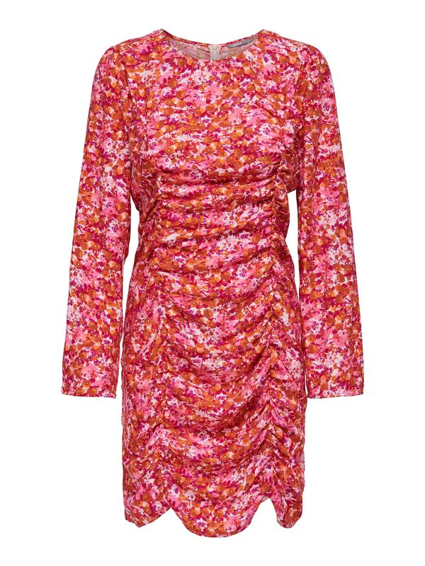 Dizajn: Prekriveni rub/šav, Zatvarač na leđima, Strukirano; Vrsta zatvaranja: Zatvarač; Materijal: Viskoza; Izrez: Okrugli izrez; Uzorak: Cvjetni uzorak; Detalji: Drapirano/nabrano; Dodaci: Uzorak preko cijele površine, Lepršava tkanina; Dužina: Do koljena; Kroj: Uski kroj; Dužina rukava: Dugački rukavi