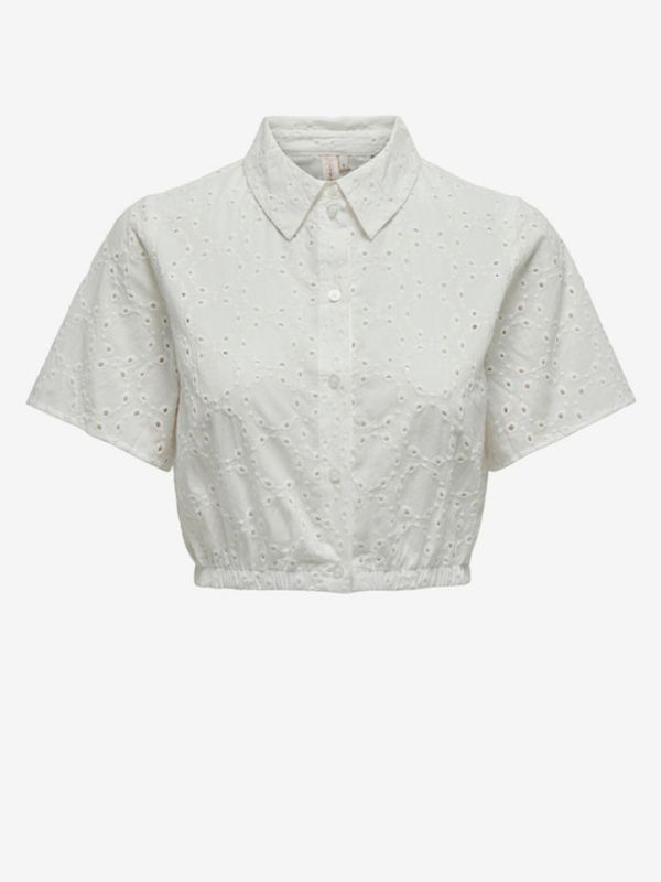 Olalook Women's White Eye-Sequined Detailed Woven Boyfriend Shirt