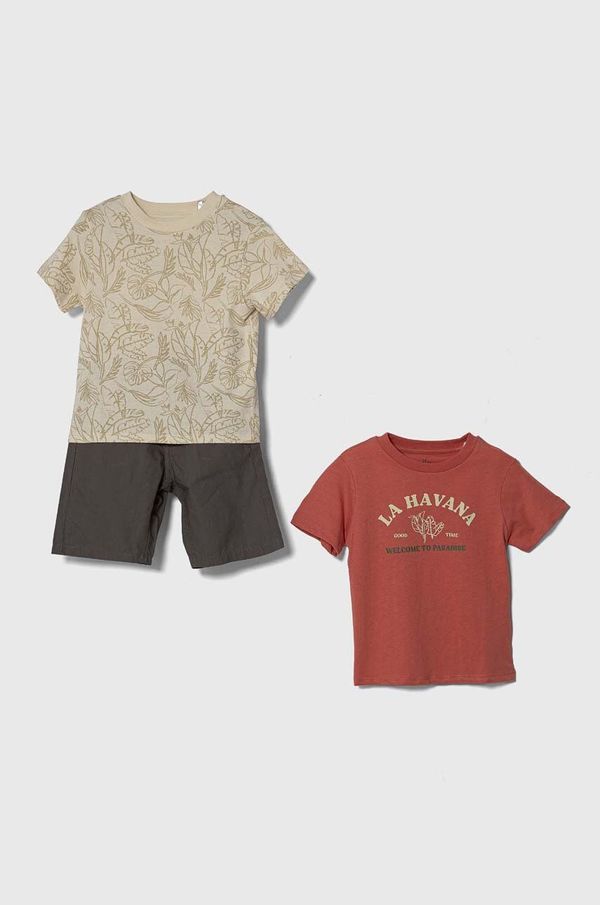 - Set uključuje dvije majice i kratke hlače.- Jednostavan kroj koji ne ograničava kretanje.- Klasični, okrugli izrez.- Kopčanje na dugmad i patentni zatvarač.- Uvlačni džepovi.- Širina ispod pazuha: 32 cm.- Duljina: 40 cm.- Širina struka: 26 cm.- Širina u bokovima: 32 cm.- Visina struka: 18 cm.- Širina nogavice: 17 cm.- Duljina nogavice: 32 cm.- Dimenzije navedene za visinu: 103 cm.