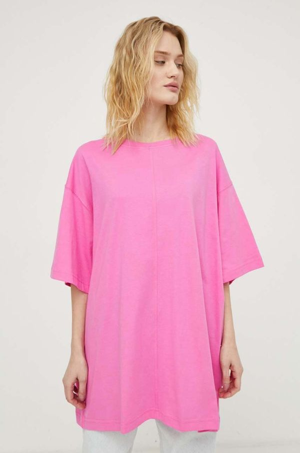 - Organski pamuk uzgaja se bez korištenja kemikalija opasnih po zdravlje, kemijskih pesticida ili umjetnih gnojiva.- Široki kroj za potpunu slobodu kretanja.- Kroj rukava sa spuštenom linijom ramena osigurava pokretljivost.- Klasični, okrugli izrez.- Duljina: 83 cm.- Širina ispod pazuha: 68 cm.- Dimenzije navedene za veličinu: S/M.
