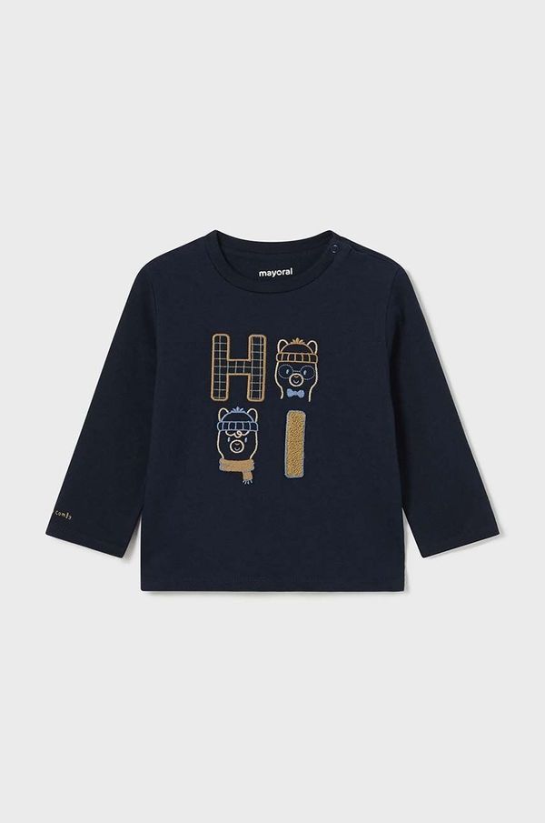 Pamučna majica dugih rukava za bebe Mayoral boja: tamno plava, s tiskom, 2030
