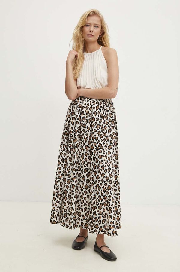 - Kroj raširen prema dolje.- Oko struka široka, elastična letva.- Dva bočna džepa.- Model bez podstave.- Tanka, ne elastična tkanina.- Širina struka: 30,5 cm.- Duljina: 97,5 cm.- Dimenzije navedene za veličinu: S.