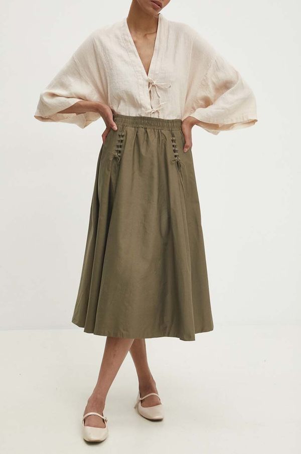 - Kroj raširen prema dolje.- Elastična guma oko struka.- Model s ukrasnim vezivanjem.- Debela, ne elastična tkanina.- Širina struka: 30 cm.- Duljina: 80 cm.- Dimenzije navedene za veličinu: S.