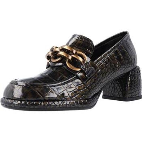 Marjin Women's Loafers Chain Accessorized Loafers Casual Shoes Alva Black Croco