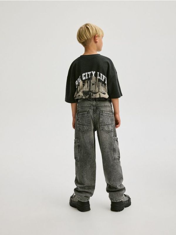 Reserved - Classic denim regular hlače - siva - kopčanje patentnim zatvaračem i gumbom,duge ravne nogavice,klasičan komplet od pet džepova,cargo bočni džepovi,upečatljiv isprani izgled,prilagodljivi pojas 100% PAMUK