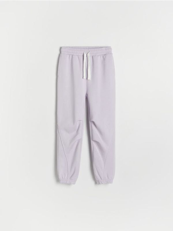 Reserved - Donji dio trenirke - boja lavande - rastezljiva vezica za pritezanje oko struka,dva prednja džepa,duge nogavice s rebrastim porubom,mekana plišana podstava 70% PAMUK, 30% POLIESTERSKO VLAKNO