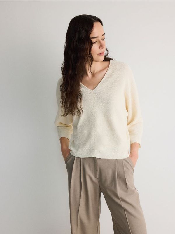 Reserved - Džemper s visokim udjelom viskoze - krem