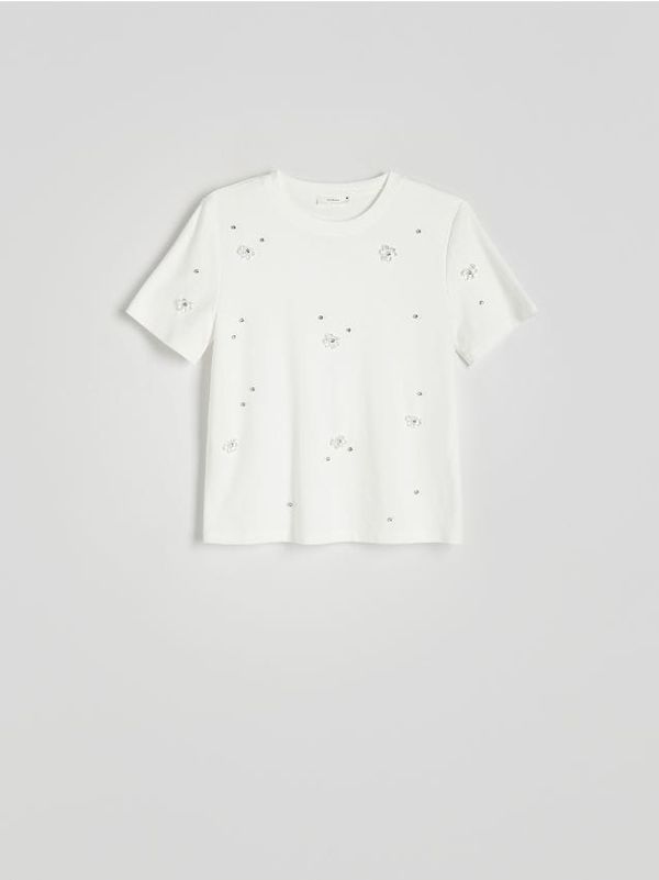 Reserved - Majica kratkih rukava s detaljima sa štrasom - bijela