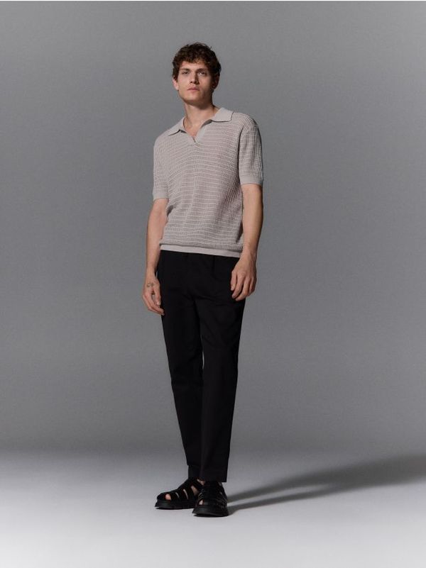 Reserved - Regular polo-majica od strukturirane tkanine - krem