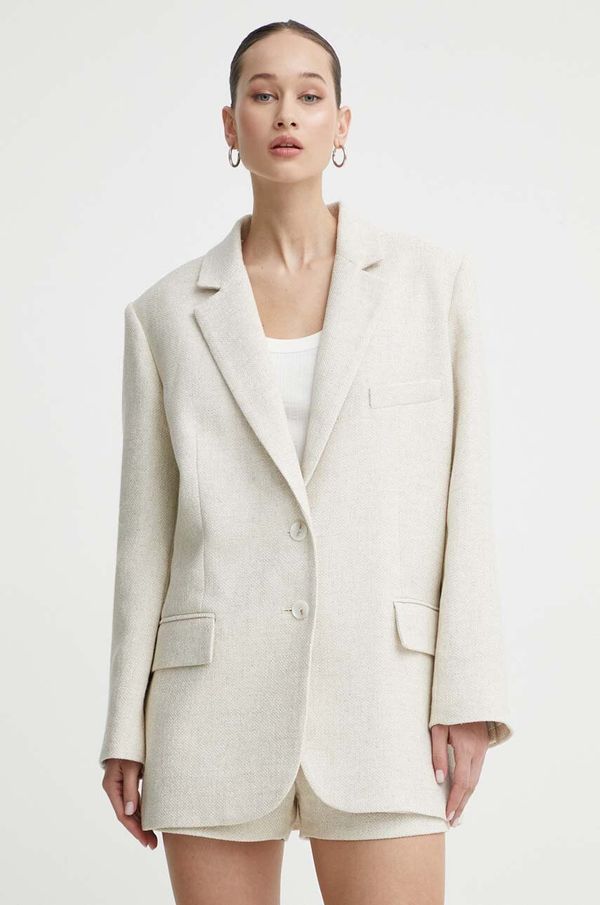 - Široki kroj za potpunu slobodu kretanja.- U ramenima ušiveni jastučići.- Klasični preklopi.- Model s podstavom.- Jednoredno kopčanje gumbima.- Dva džepa na prednjoj strani.- Džep na prsima.- Duljina rukava (mjereno od ovratnika): 75 cm.- Duljina: 77 cm.- Širina ispod pazuha: 55 cm.- Dimenzije navedene za veličinu: 36.