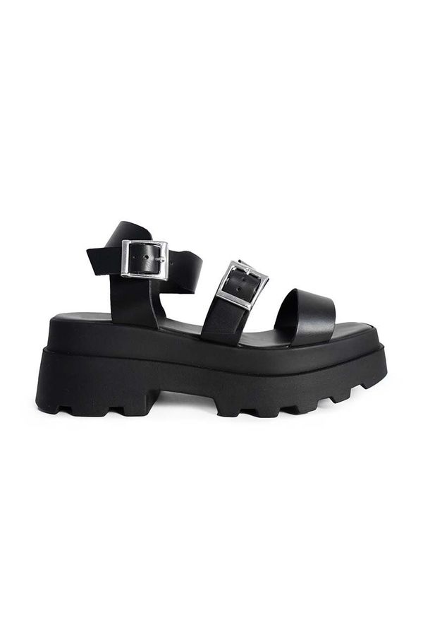 Marjin Women's Genuine Leather Accessoried Eva Sole Daily Sandals Kevas Black