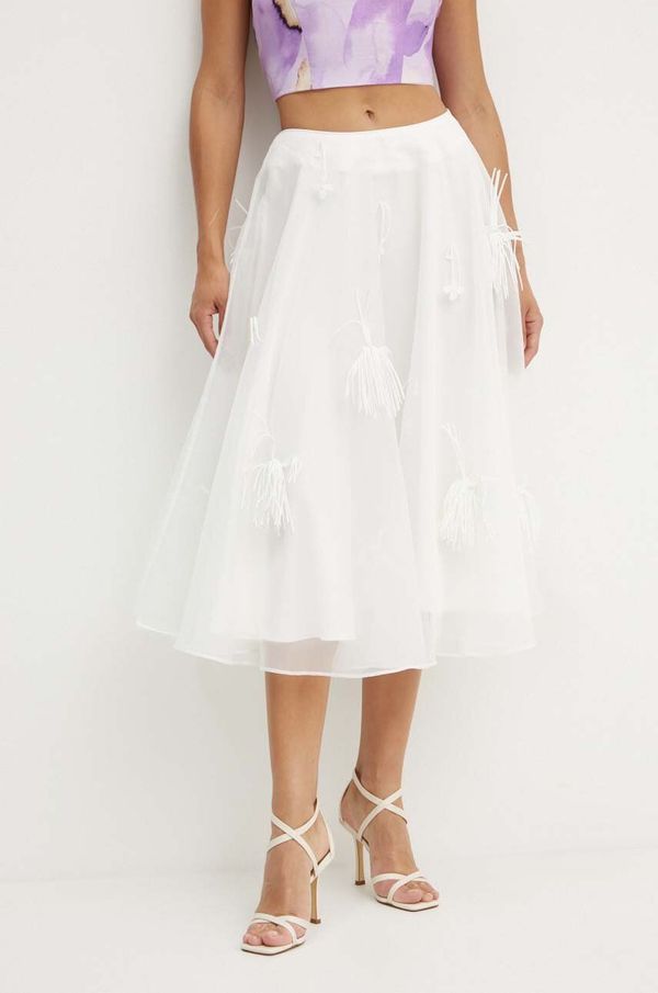 - Kopčanje na skriveni patentni zatvarač i kukicu.- Kroj raširen prema dolje.- Dodatni sloj materijala u obliku podstave.- Ukrasni umeci.- Tanka, ne elastična tkanina.- Širina struka: 36 cm.- Duljina: 80 cm.- Dimenzije navedene za veličinu: S.