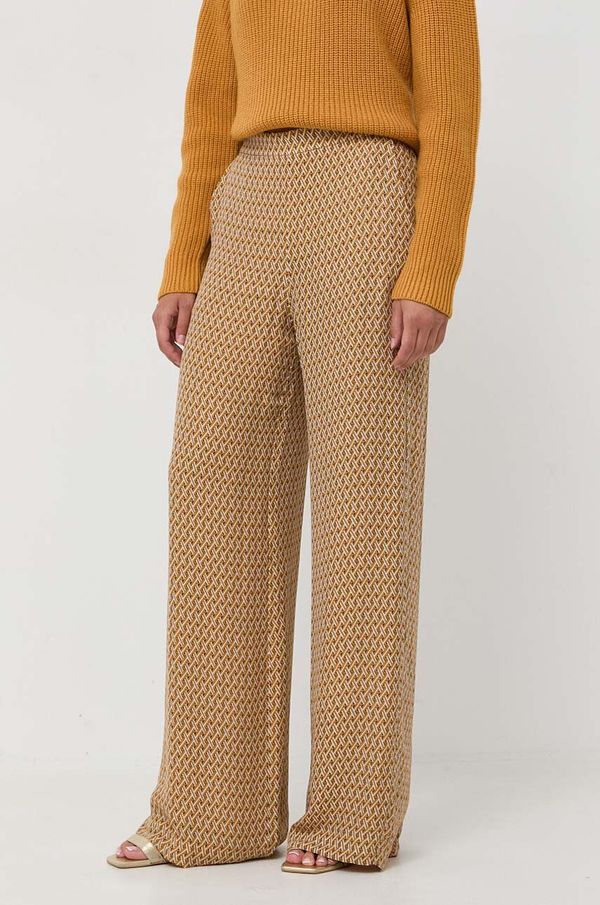 - Ovaj je proizvod djelomično izrađen od recikliranog poliestera.- Model s povišenim strukom i skrivenim patentnim zatvaračem.- Elastična guma oko struka.- Model s podstavom.- Dva bočna džepa.- Široka nogavica.- Širina struka: 38 cm.- Širina u bokovima: 47 cm.- Visina struka: 32 cm.- Širina nogavice pri dnu: 31 cm.- Širina nogavice: 32 cm.- Vanjska duljina nogavice 114 cm.- Dimenzije navedene za veličinu: 36.