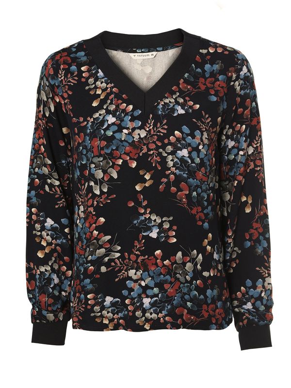 Chestnut and black blouse with print