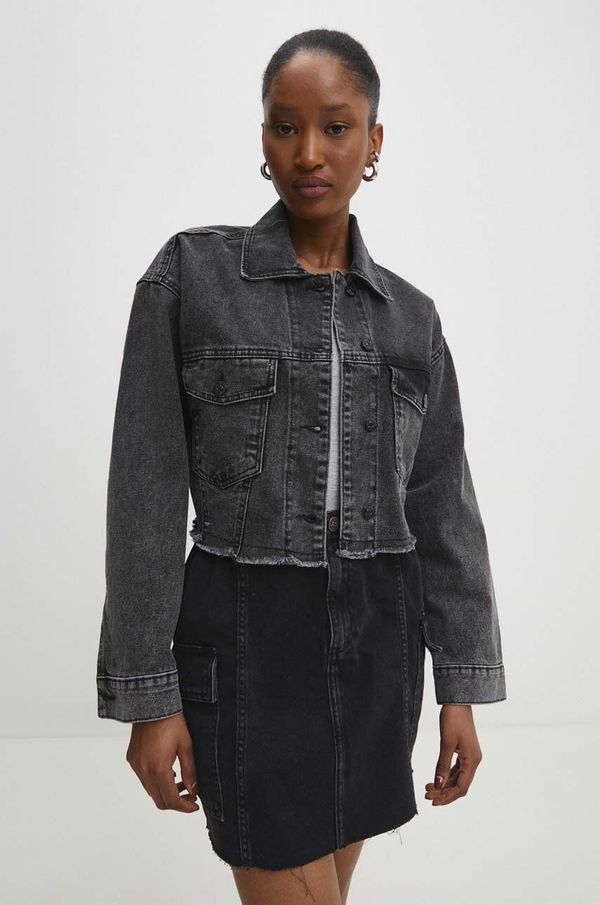 - Kroj oversize.- Model bez toplinske izolacije, bez podstave.- Manžete na kopčanje gumbima.- Kopčanje na dugmad.- Džep na grudima.- Tanki materijal.- Kroj rukava sa spuštenom linijom ramena osigurava pokretljivost.- Duljina rukava (mjereno od ovratnika): 72 cm.- Duljina: 45 cm.- Širina ispod pazuha: 48 cm.- Dimenzije navedene za veličinu: S.