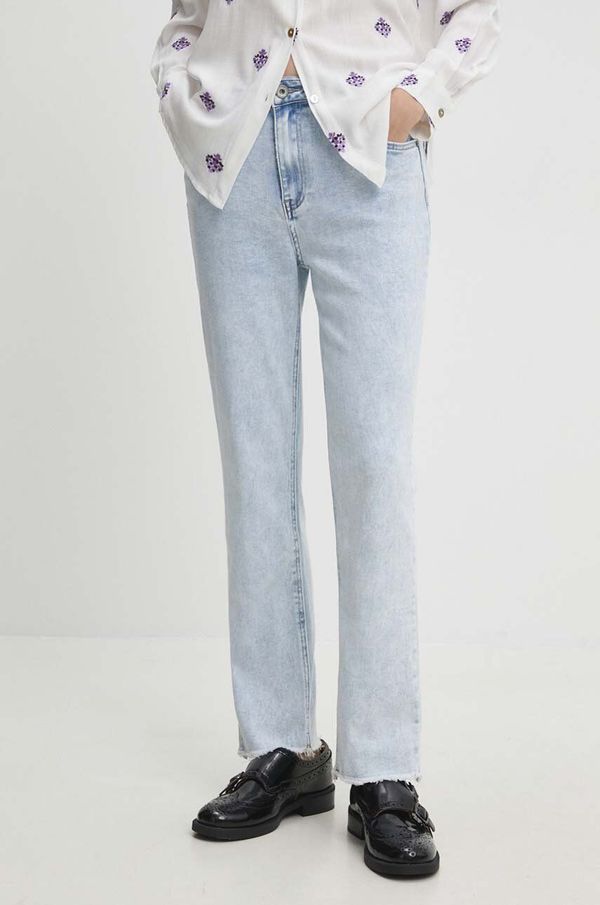 - Model s povišenim strukom i kopčanjem gumbima i patentnim zatvaračem.- Tri džepa na prednjoj strani.- Dva džepa na stražnjici.- Širina struka: 37 cm.- Širina u bokovima: 46 cm.- Visina struka: 27 cm.- Širina nogavice pri dnu: 17 cm.- Širina nogavice: 29 cm.- Vanjska duljina nogavice 97 cm.- Dimenzije navedene za veličinu: S.