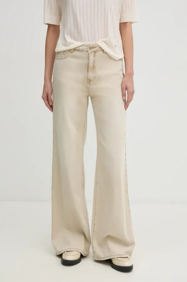 Dostupne veličine preračunate su iz talijanske veličine u standardnu europsku veličinu. Naručena veličina može se razlikovati od one prikazane na etiketi (IT 38/XXS = EU XS). Kako biste bili sigurni, pogledajte tablicu veličina.- Model s povišenim strukom i kopčanjem gumbima i patentnim zatvaračem.- Tri džepa na prednjoj strani.- Dva džepa na stražnjici.- Model dekorativno pohaban.- Nogavica raširena prema dolje.- Širina struka: 36 cm.- Širina u bokovima: 45 cm.- Visina struka: 28 cm.- Širina nogavice pri dnu: 30 cm.- Širina nogavice: 25 cm.- Vanjska duljina nogavice 109 cm.- Dimenzije navedene za veličinu: 27.