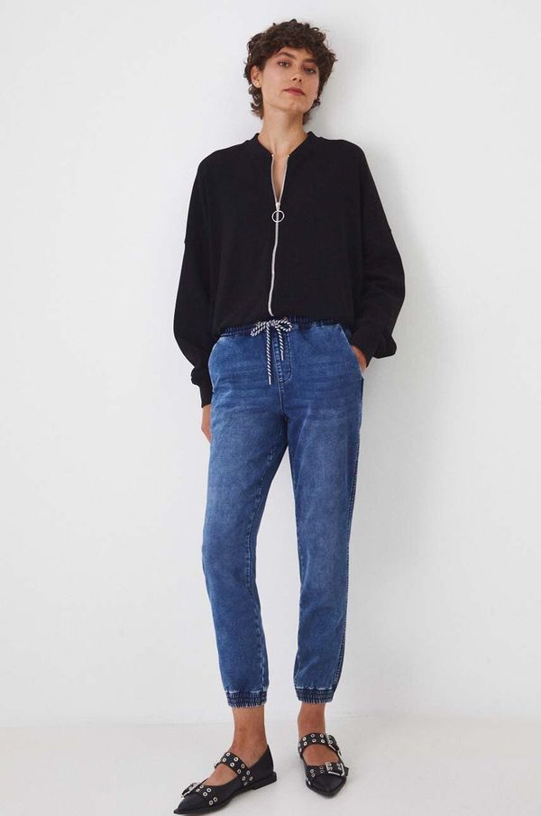 - Jogger kroj - traperice karakteriziraju nogavice završene elastičnim rubom, a opušteniji oblik daje im pomalo streetwear karakter. Kroj je preuzet od trenirke - univerzalne su i udobne za korištenje, odgovaraju svakoj figuri.- Srednje visoki struk.- Elastična traka u struku s vezicama.- Uvlačni džepovi.- Nogavice s elastičnim obrubom.- Ukrasno isprani traper.- Širina struka (prije rastezanja): 36,5 cm.- Širina struka (nakon rastezanja): 44 cm.- Širina u bokovima: 50 cm.- Visina struka: 25 cm.- Duljina unutarnjeg ruba nogavice: 70 cm.- Dimenzije navedene za veličinu: 36.