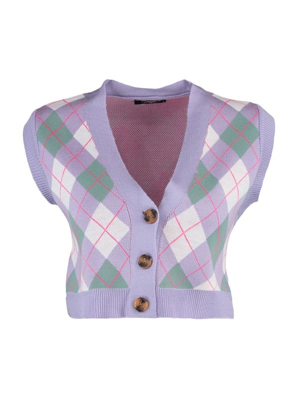 Dizajn: Ravni rub, Red gumba, Rebrasto pletivo; Vrsta zatvaranja: Zatvaranje na gumbe; Materijal: Pletivo; Izrez: V-izrez; Uzorak: Karirani uzorak; Dodaci: Uzorak preko cijele površine, Fully fashioned - s crtom na sredini, Mekani grip; Kroj: Normalni kroj; Dužina rukava: Bez rukava; Dužina: Normalna duljina