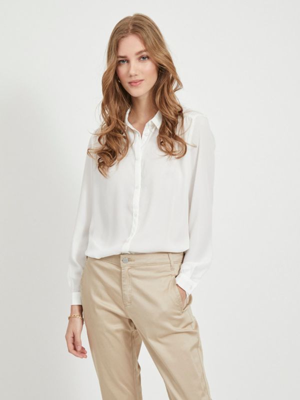 Olalook Women's White Eye-Sequined Detailed Woven Boyfriend Shirt