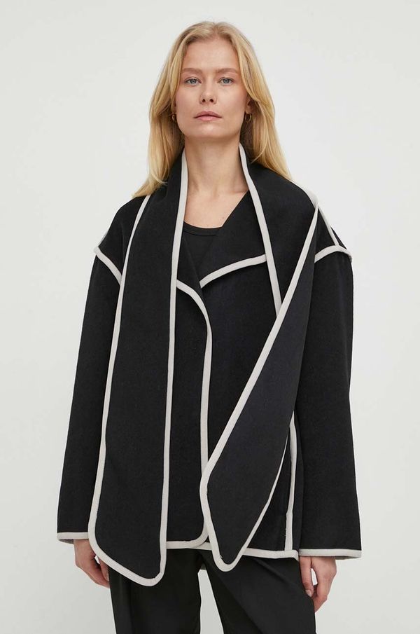 - Široki kroj za potpunu slobodu kretanja.- Kopčanje na drukere.- Kroj rukava sa spuštenom linijom ramena osigurava pokretljivost.- Odvojivi šal.- Dva bočna džepa.- Model bez toplinske izolacije, bez podstave.- Duljina rukava (mjereno od ovratnika): 71,5 cm.- Duljina: 71 cm.- Širina ispod pazuha: 58 cm.- Dimenzije navedene za veličinu: 36.